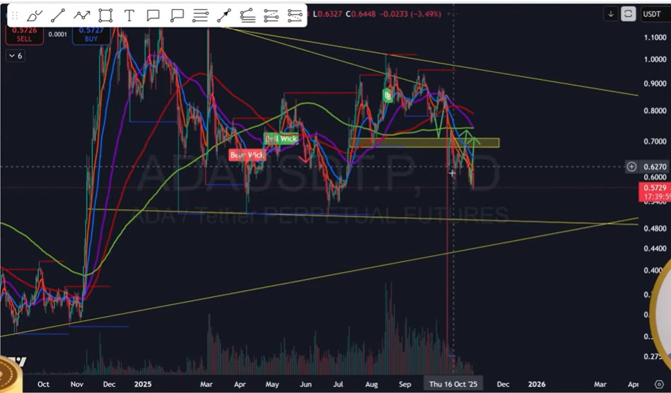- ADA đang giảm đúng theo kỳ vọng trước đó và đã chạm vùng 0.57 USD