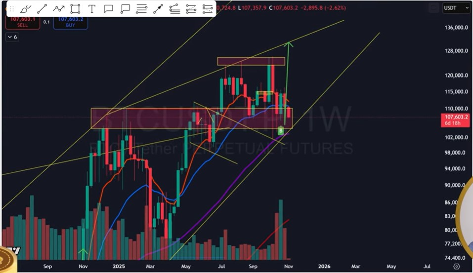 - Khung tuần cho thấy khả năng tiếp tục dip về vùng 103,000–104,400 USD.