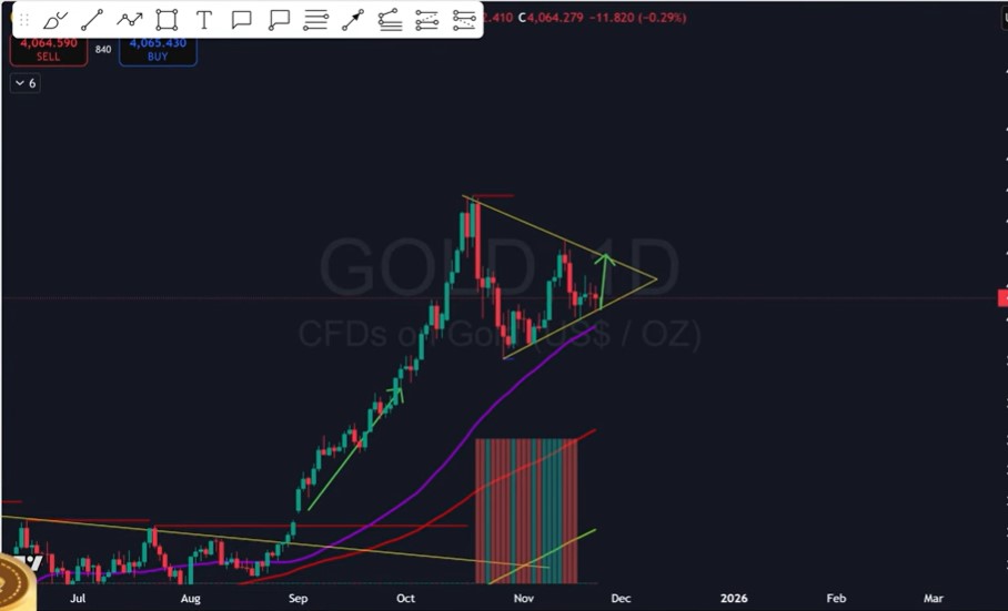 - Nếu giá breakout khỏi mô hình tích lũy hiện tại, Mậu expect vàng có thể tăng tiếp lên vùng 4300–4400 USD.