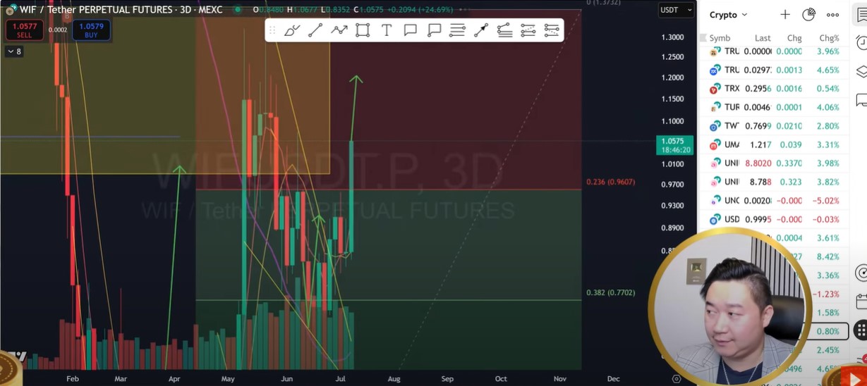 - WIF đã breakout khỏi mô hình Falling Wedge, một mô hình tăng giá mạnh mà Mậu đặc biệt ưa thích.