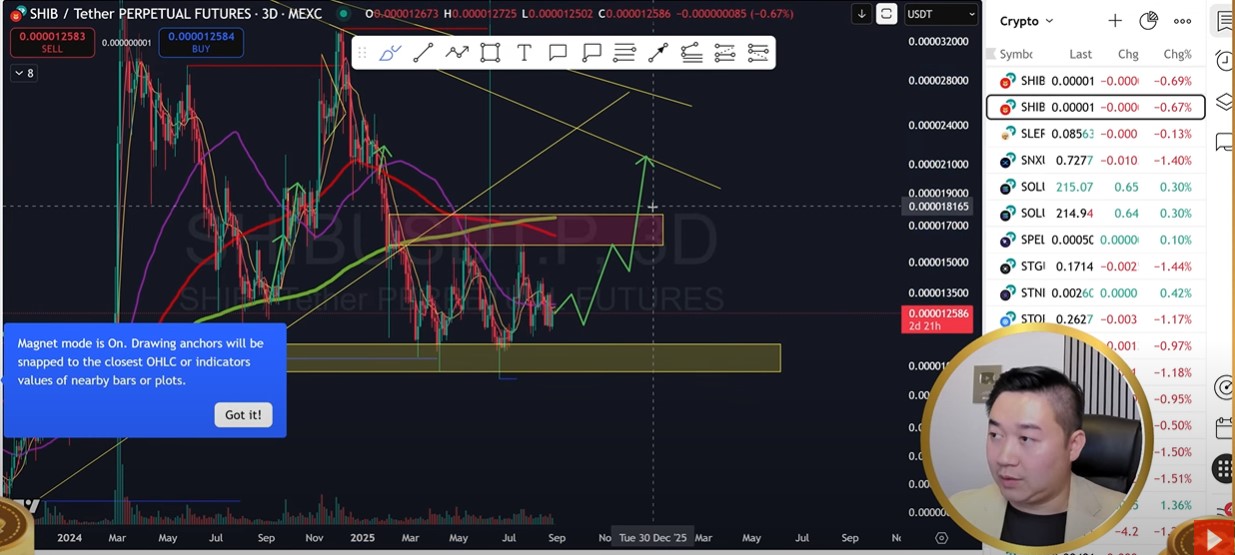 - Nếu vượt được 0.0000145 USD, có thể breakout mạnh, đẩy tới khoảng 0.0000215 USD.