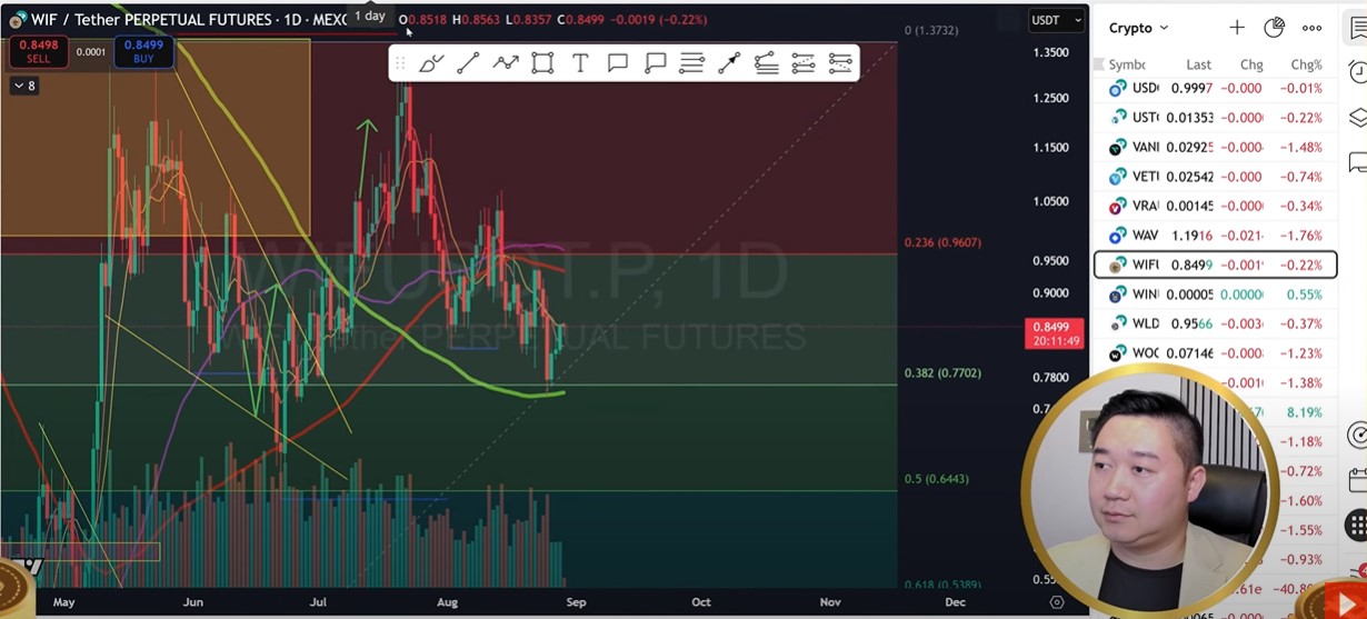 - WIF trên khung ngày đã xuất hiện tín hiệu bullish divergence, cho thấy lực bán đang yếu dần.