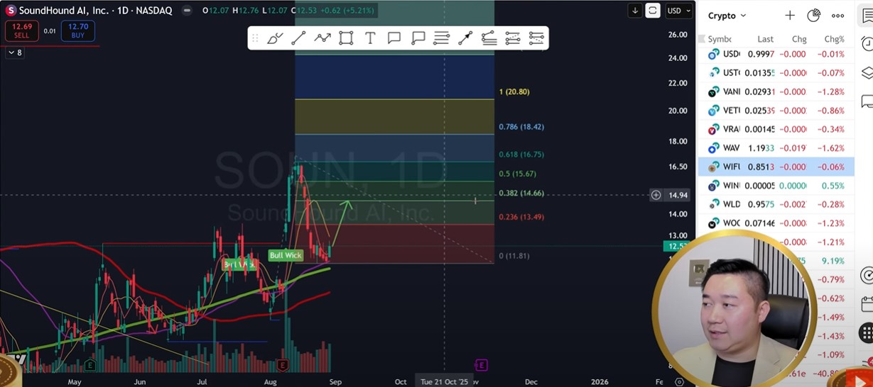 - Xa hơn: Nếu 14.60 USD cũng bị vượt qua, SOUN có khả năng tiến tới test lại đỉnh cũ.