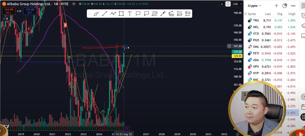- BABA vừa có nhịp dip rồi bật tăng rất mạnh, cho thấy lực mua tốt.