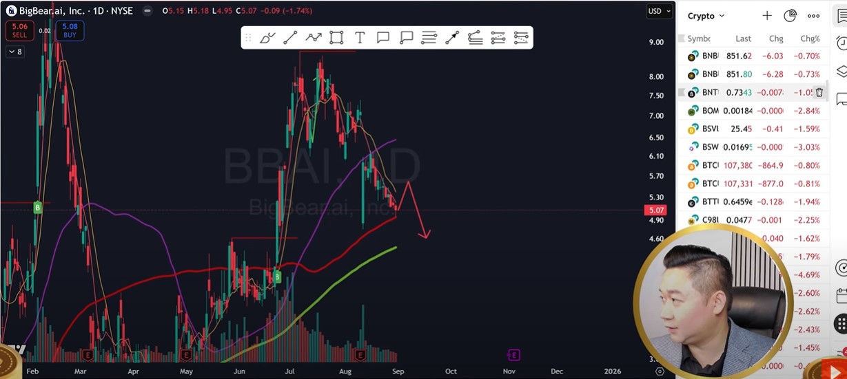 - BBAI đã đi khá sát với kịch bản trước đó: dip về quanh 6.75 USD, sau đó bật lên tới 7.68 USD, rất gần target 8 USD.