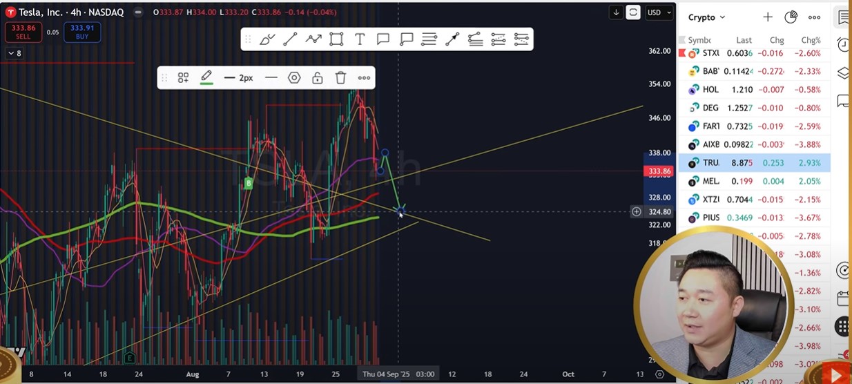 - Ngắn hạn: Mẫu expect Tesla có thể dip về vùng 324 – 325 USD.