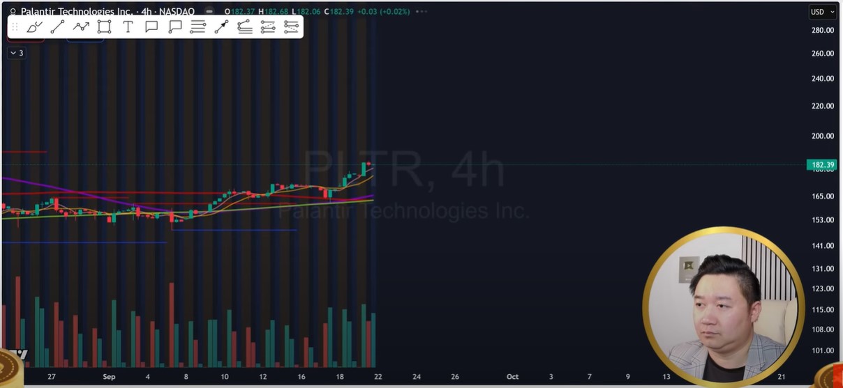 - PLTR đã đạt đúng mục tiêu trước đó, tăng từ 177.2 USD lên 184.41 USD, rồi điều chỉnh giảm ngay sau khi chạm mức cao này.