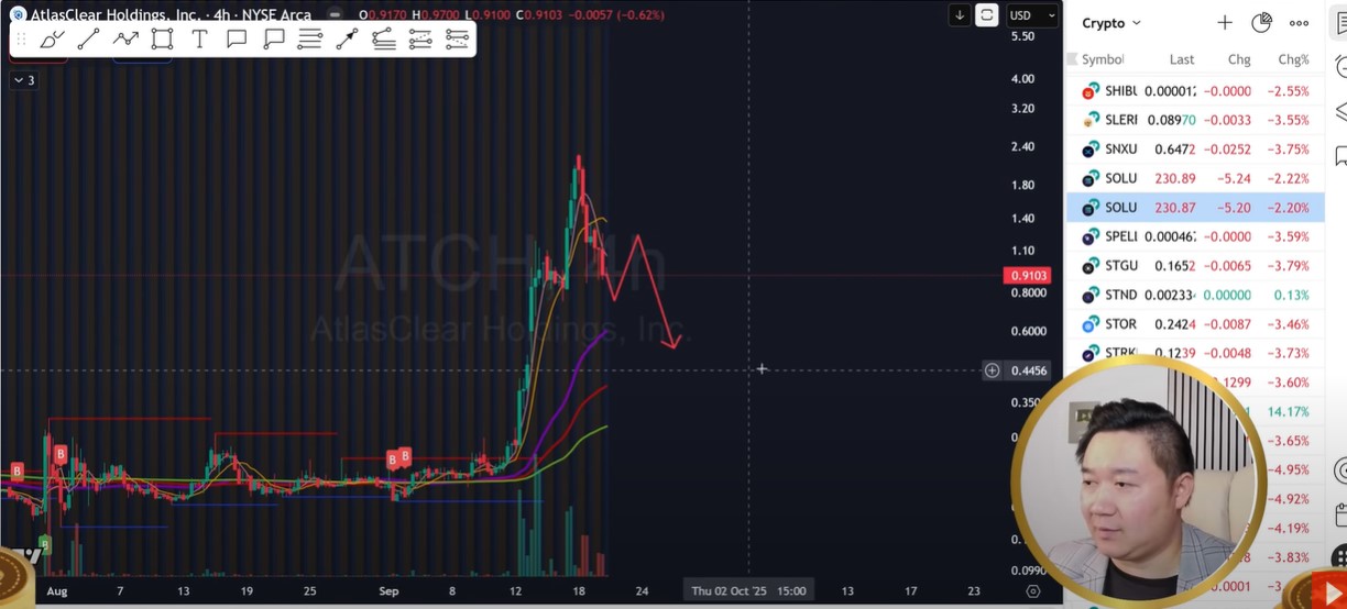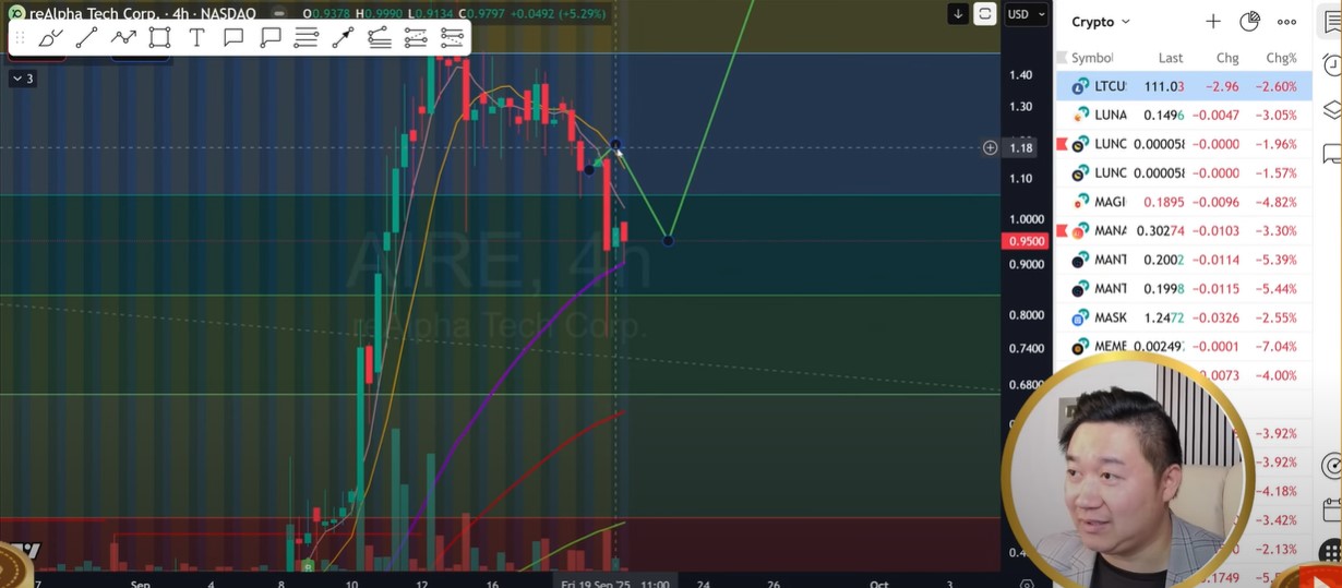 - Dip về 0.75 USD → bật lên 1.2–1.23 USD → rớt mạnh về 0.53 USD.
