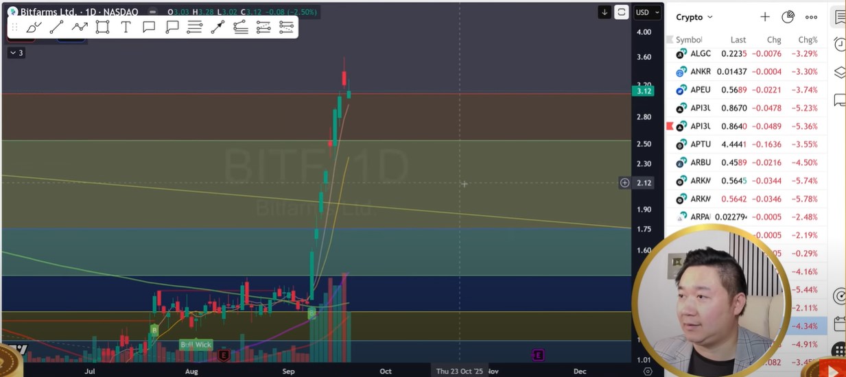 - BITF đã tăng từ mức 2.23 USD lên 2.75 USD, đi đúng theo kỳ vọng trước đó.